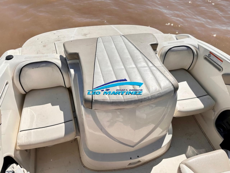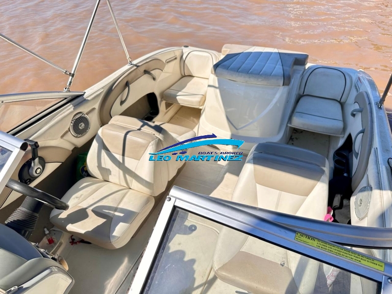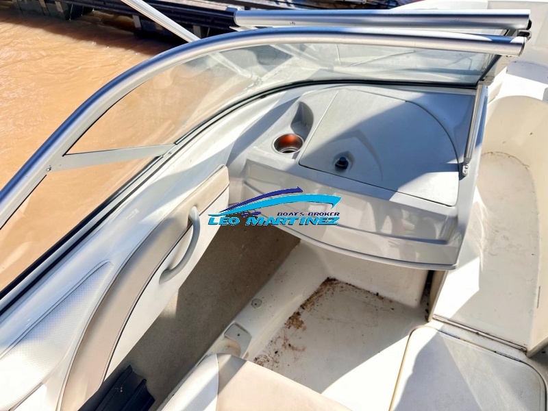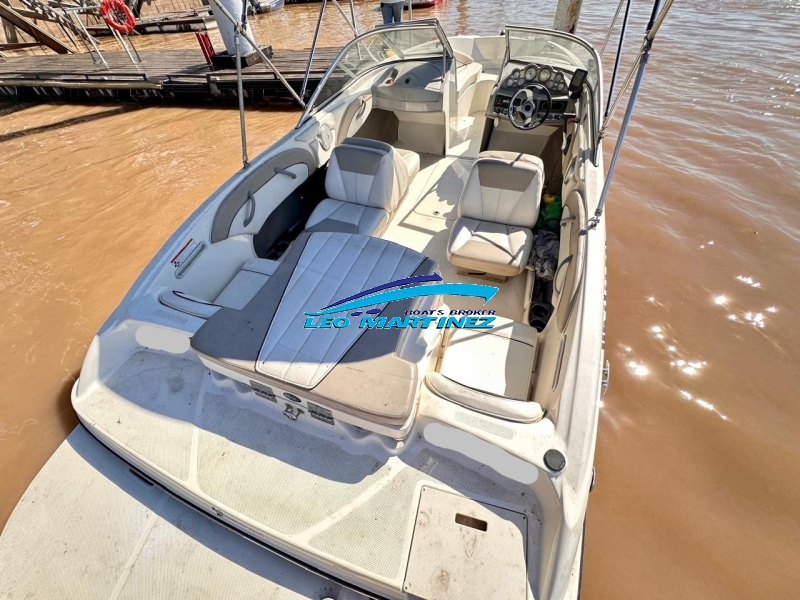 | Equipamiento: | Instrumental completo, ecosonda, corta corriente, bomba de achique, extractor de gases, audio CD MP3, butacas back to back, tambuchos en proa, asientos en popa, guarda ski, tanque de combustible interno (100 lts.), solarium en popa, toldilla, tonneau de proa, plancha de popa extendida, escalera. |