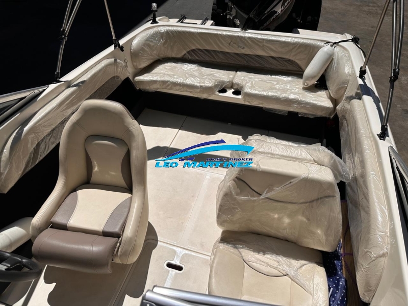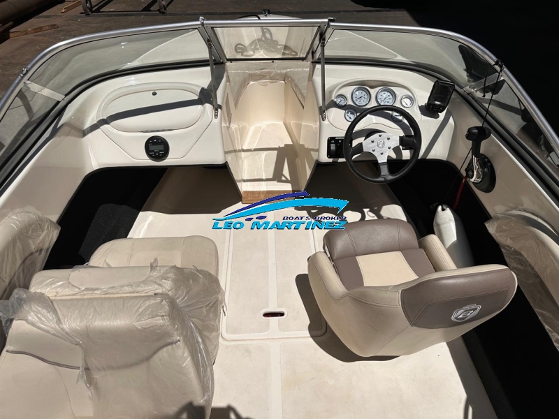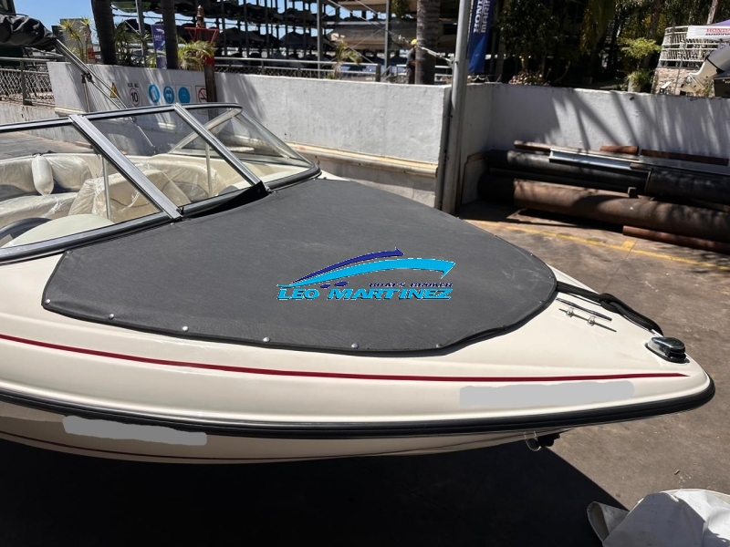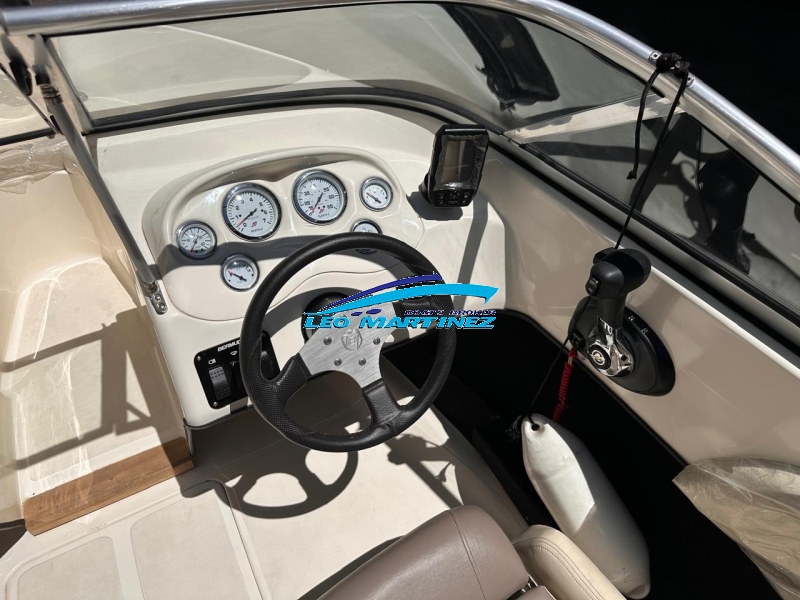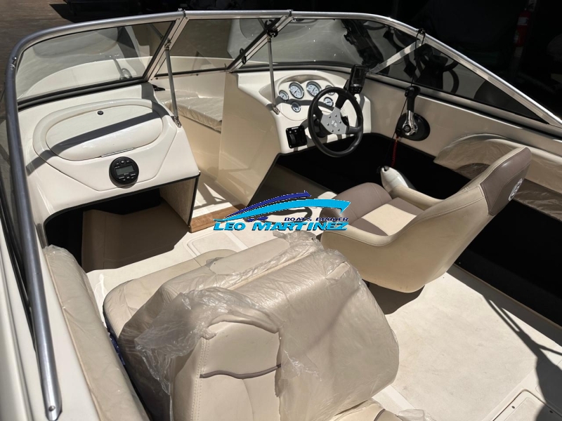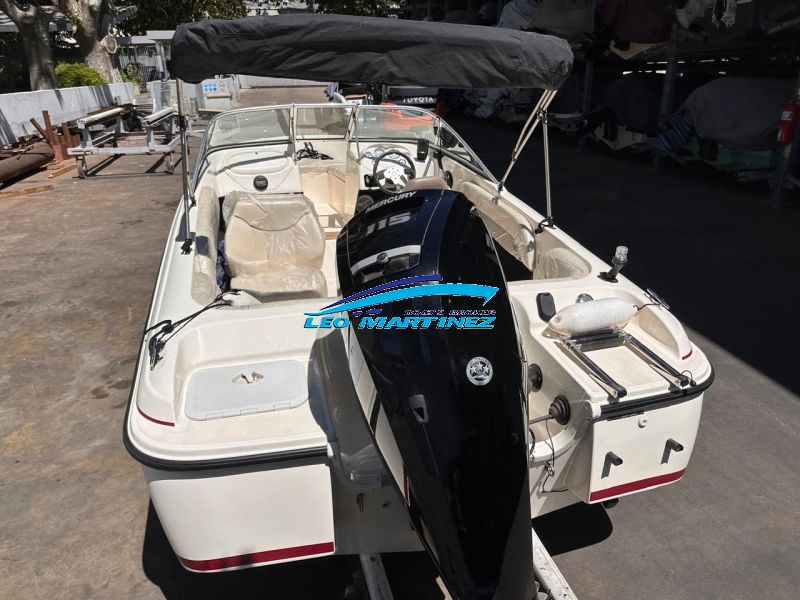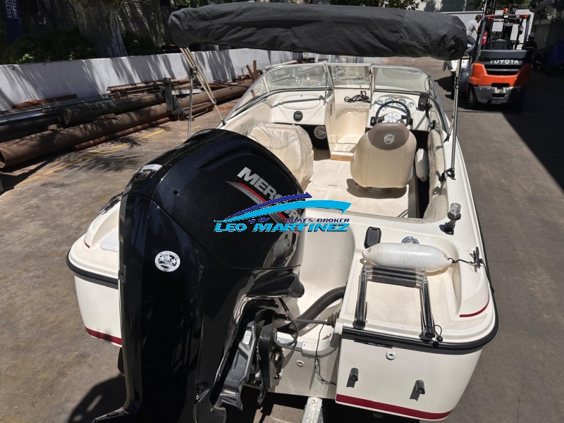 | Equipamiento: | Instrumental completo, ecosonda, audio, corta corrriente, butaca giratoria de timonel, butacas back to back de acompañantes, asiento entero en popa, tambuchos en proa, caja guarda ski, tanque de combustible interno (119 Lts.), conservadora en popa, toneau de proa, toldilla, barra de ski, escalera. |