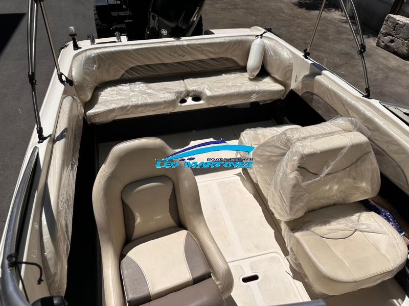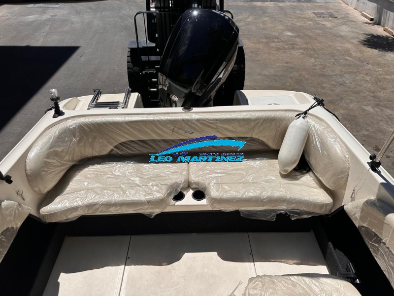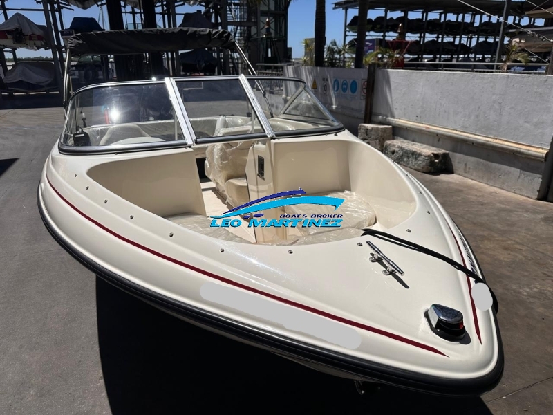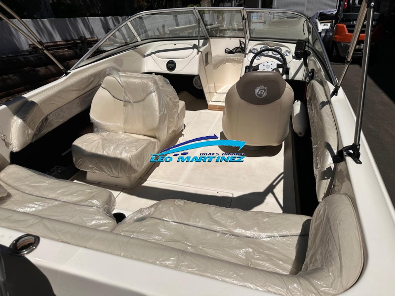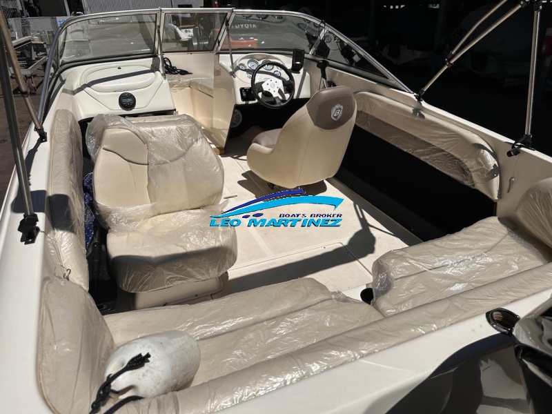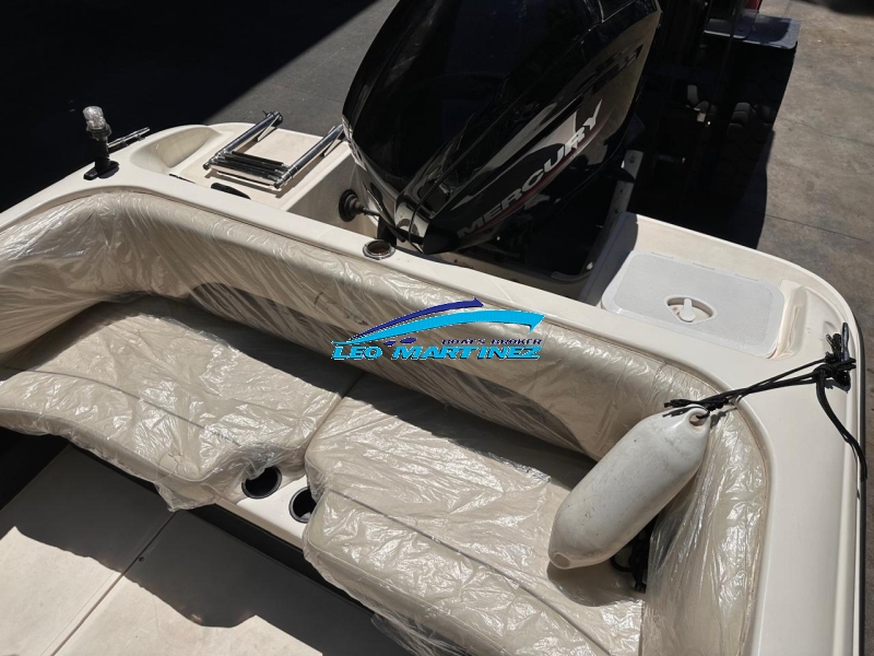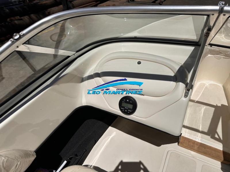 | Equipamiento: | Instrumental completo, ecosonda, audio, corta corrriente, butaca giratoria de timonel, butacas back to back de acompañantes, asiento entero en popa, tambuchos en proa, caja guarda ski, tanque de combustible interno (119 Lts.), conservadora en popa, toneau de proa, toldilla, barra de ski, escalera. |