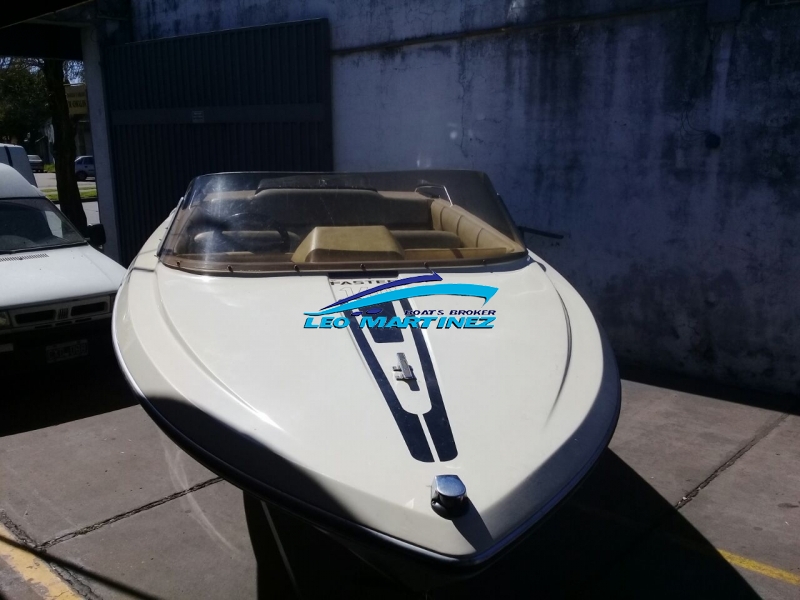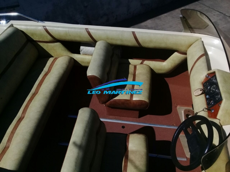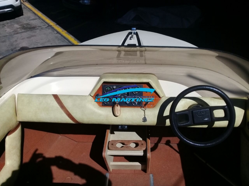| Equipamiento: | Instrumental completo, bomba de achique, butacas de timonel y acompañante, asiento entero en popa, guarda ski, tanque de combustible interno, solarium en popa. |