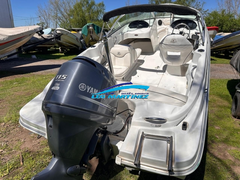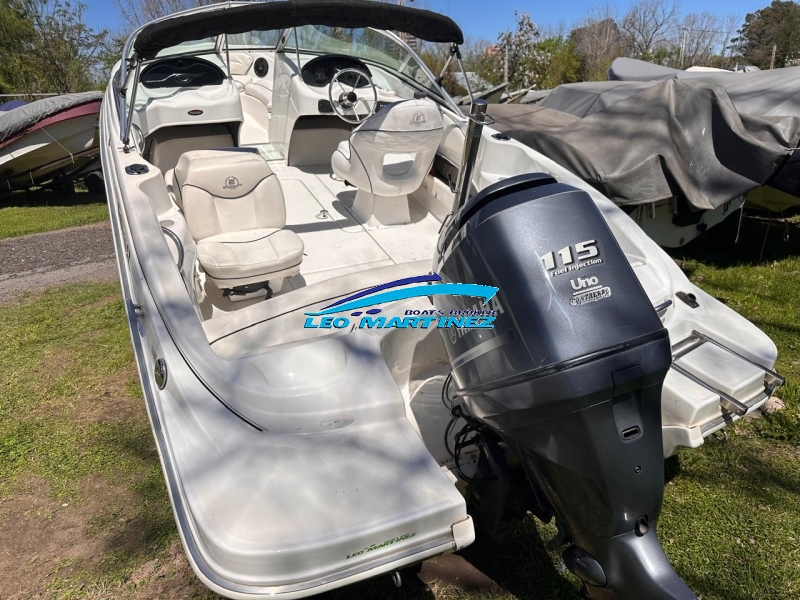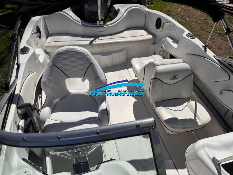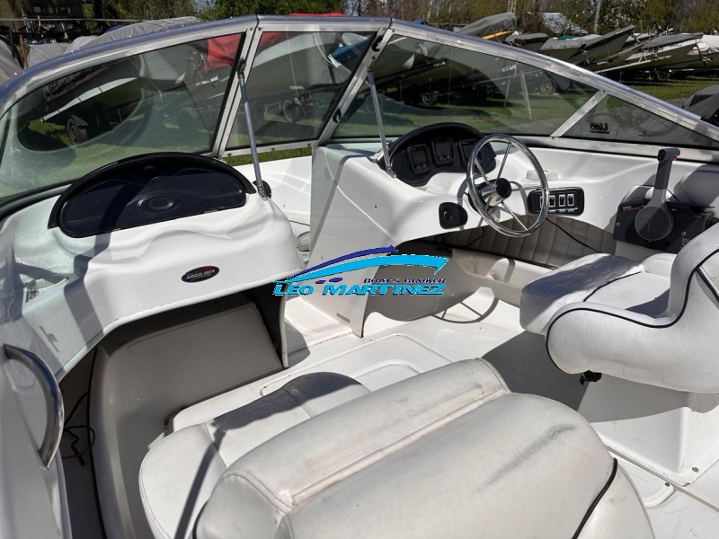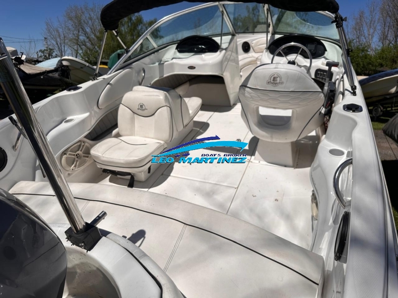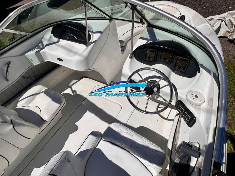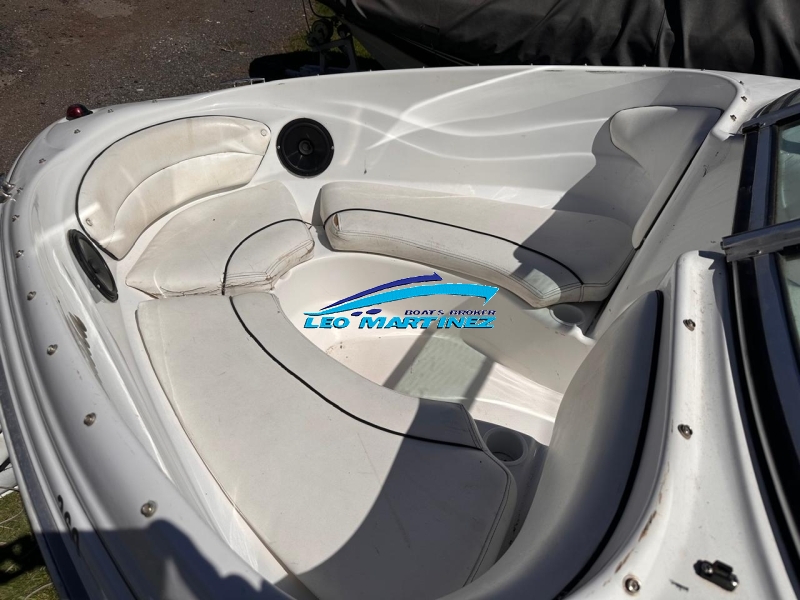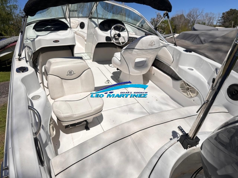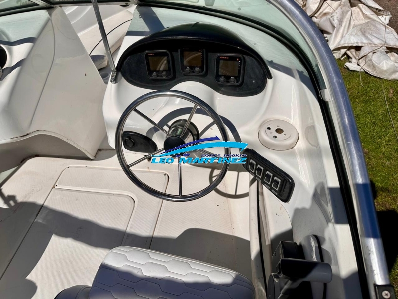 | Equipamiento: | Instrumental completo, audio, bomba de achique, corta corriente, butaca de timonel giratoria, butaca de acompañantes back to back, asiento entero en popa, tambuchos en proa, barra de ki, guarda ski, tanque de combustible interno (80 Lts.), toneau de proa, toldilla, escalera. |