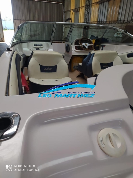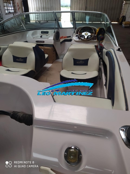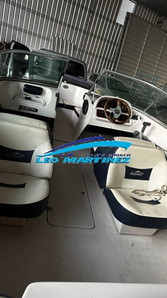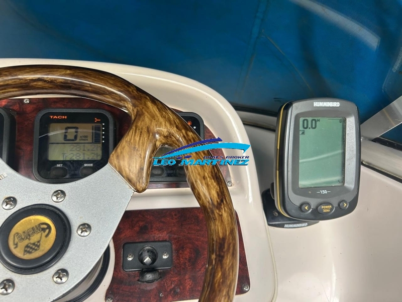 | Equipamiento: | Instrumental completo, ecosonda, audio, corta corriente, bomba de achique, butacas back to back, asientos en popa, tambuchos en proa, mesa rabatible en popa, caja guarda ski, posa cañas, tanque de combustible interno de inox. (70 Lts.), toneau de proa, toldilla, escalera. |