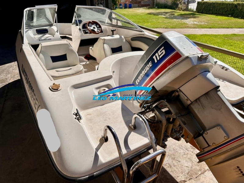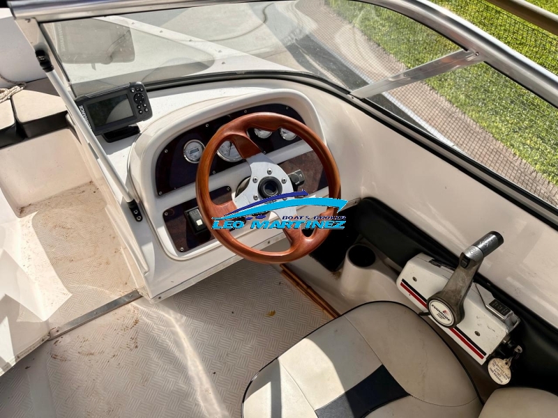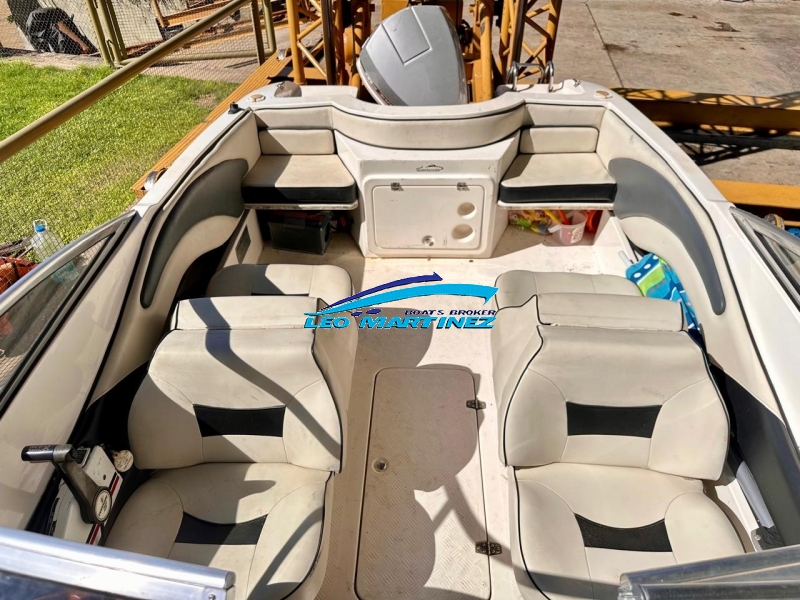 | Equipamiento: | Instrumental completo, ecosonda, corta corriente, bomba de achique, butacas back to back, asientos en popa, tambuchos en proa, mesa rabatible en popa, caja guarda ski, posa cañas, tanque de combustible interno de inox. (70 Lts.), toneau de proa, escalera. |
