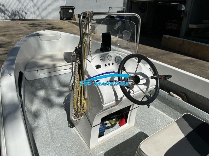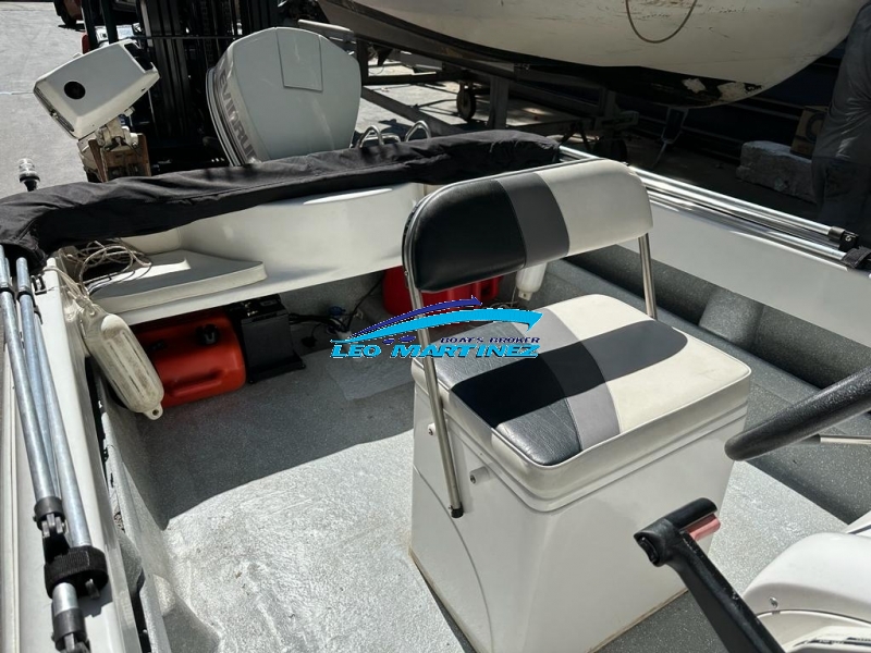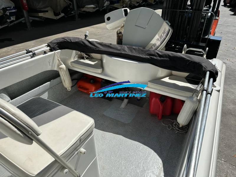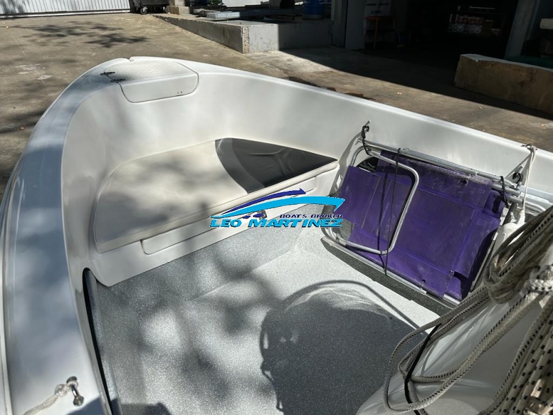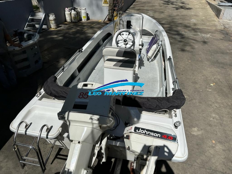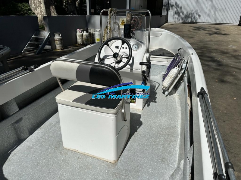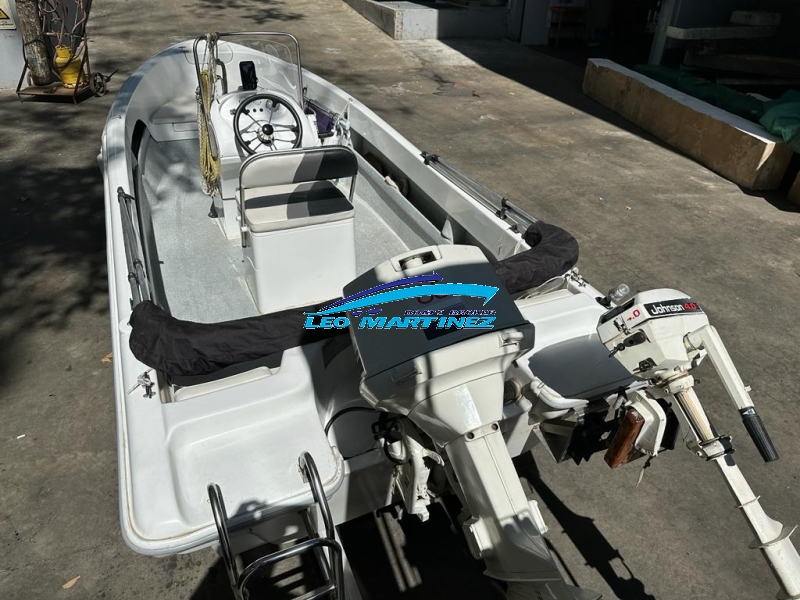 | Equipamiento: | Instrumental basico, ecosonda, bomba de achique, corta corriente, consola central con butacòn, tambucho en proa, asientos en popa, caja guarda ancla en proa, toldilla, escalera. Bracket con motor Auxiliar Johnson 4 HP, 2 T. |