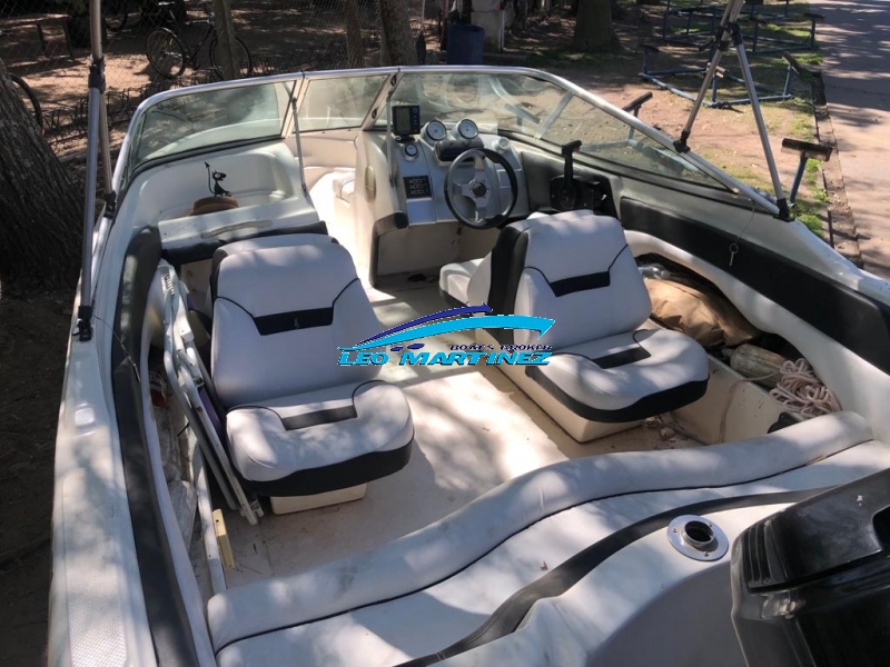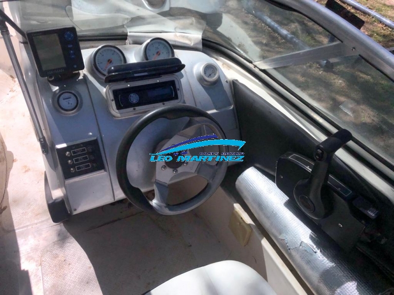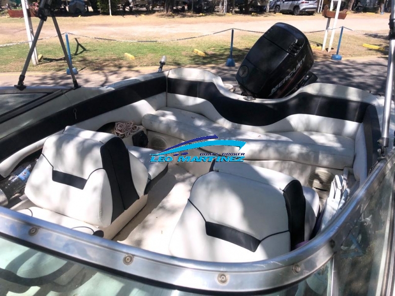 | Equipamiento: | Instrumental completo, ecosonda, audio, corta corriente, bomba de achique, butacas back to back, asiento entero en popa, tambuchos en proa y popa, tanque de combustible interno, toneau de proa, posa cañas, toldilla, escalera. |