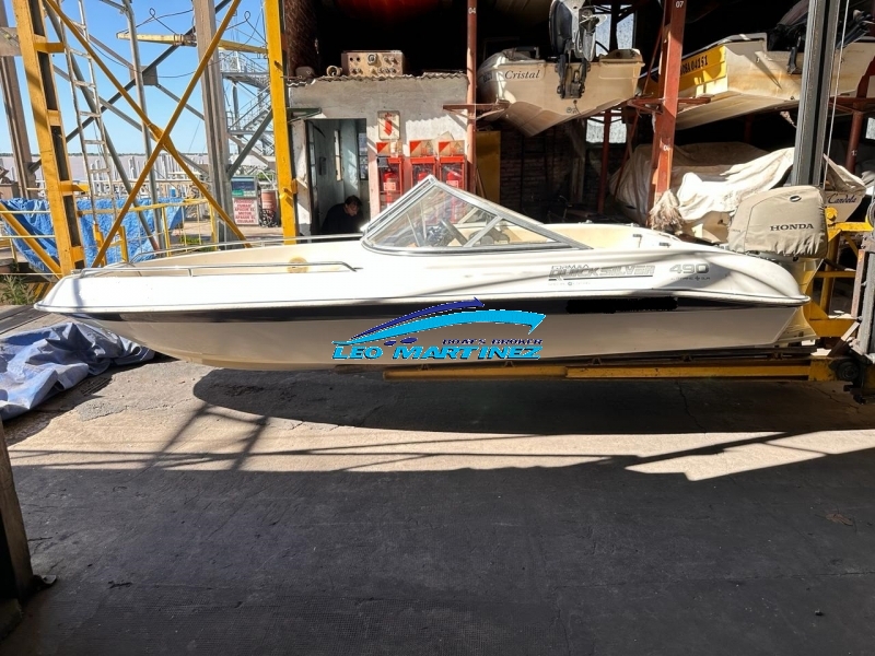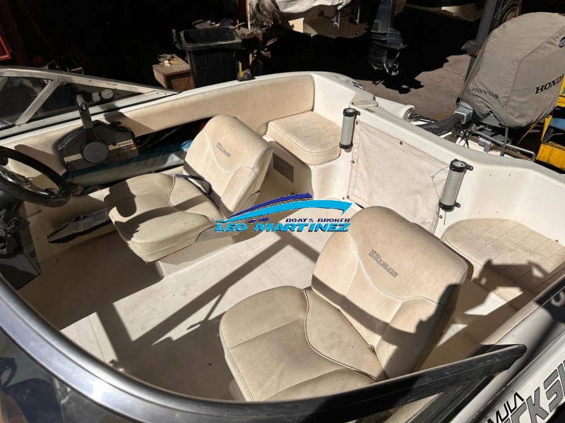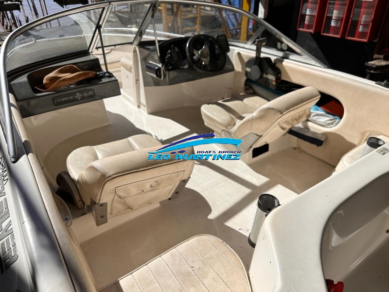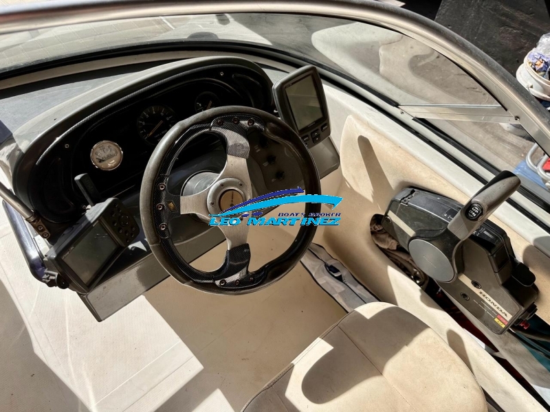 | Equipamiento: | Instrumental completo, GPS, ecosonda, audio, bomba de achique, corta corriente, butacas giratorias, asientos en popa, tambuchos en proa, tanque interno de combustible, posa cañas. |