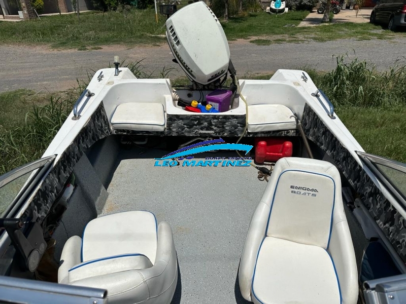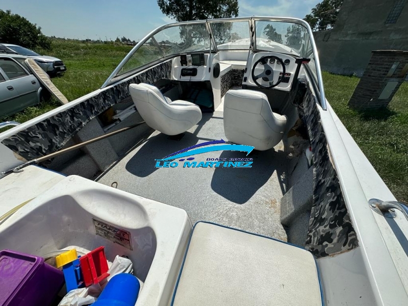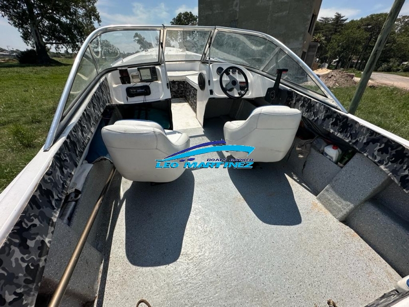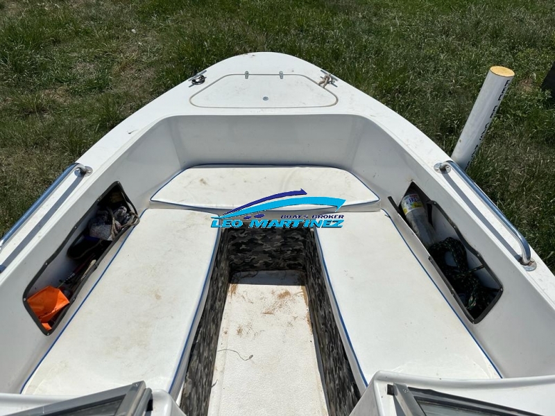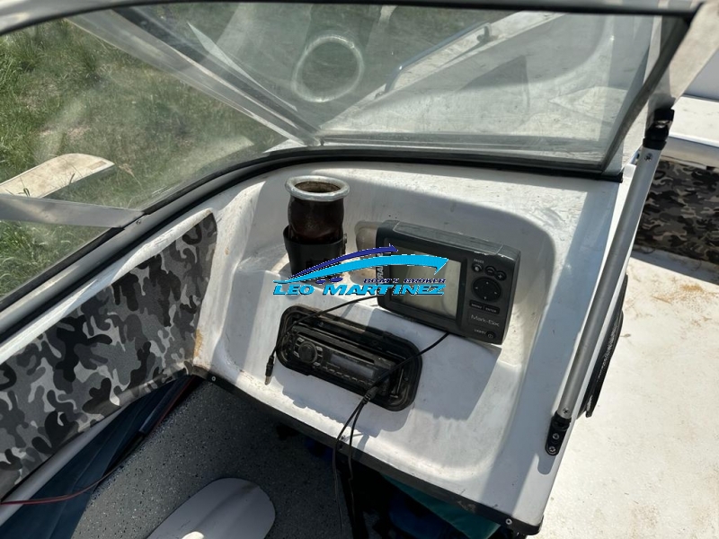 | Equipamiento: | Instrumental completo, ecosonda, audio, bomba de achique, butacas giratorias, tambuchos en proa, caja guarda ancla en proa, asientos en popa, posa cañas, escalera. |